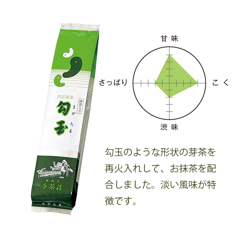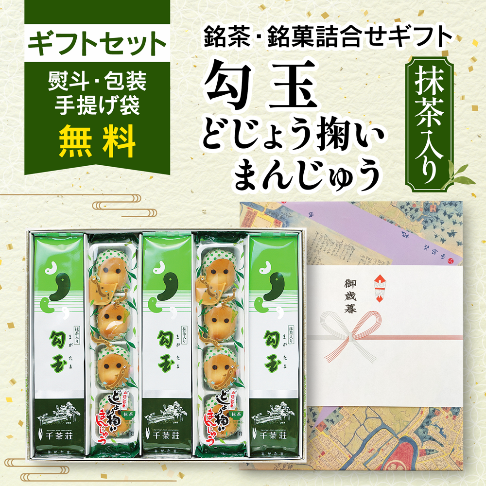 千茶荘の銘茶抹茶入り勾玉と山陰銘菓お茶席抹茶入りどじょう掬いまんじゅうの詰合せギフトです。上質な食材を使い、丁寧に作られた商品は、贈る方に喜んでもらえること間違いありません。ぜひ特別な方へのギフトや、自分へのご褒美としてお試しください。