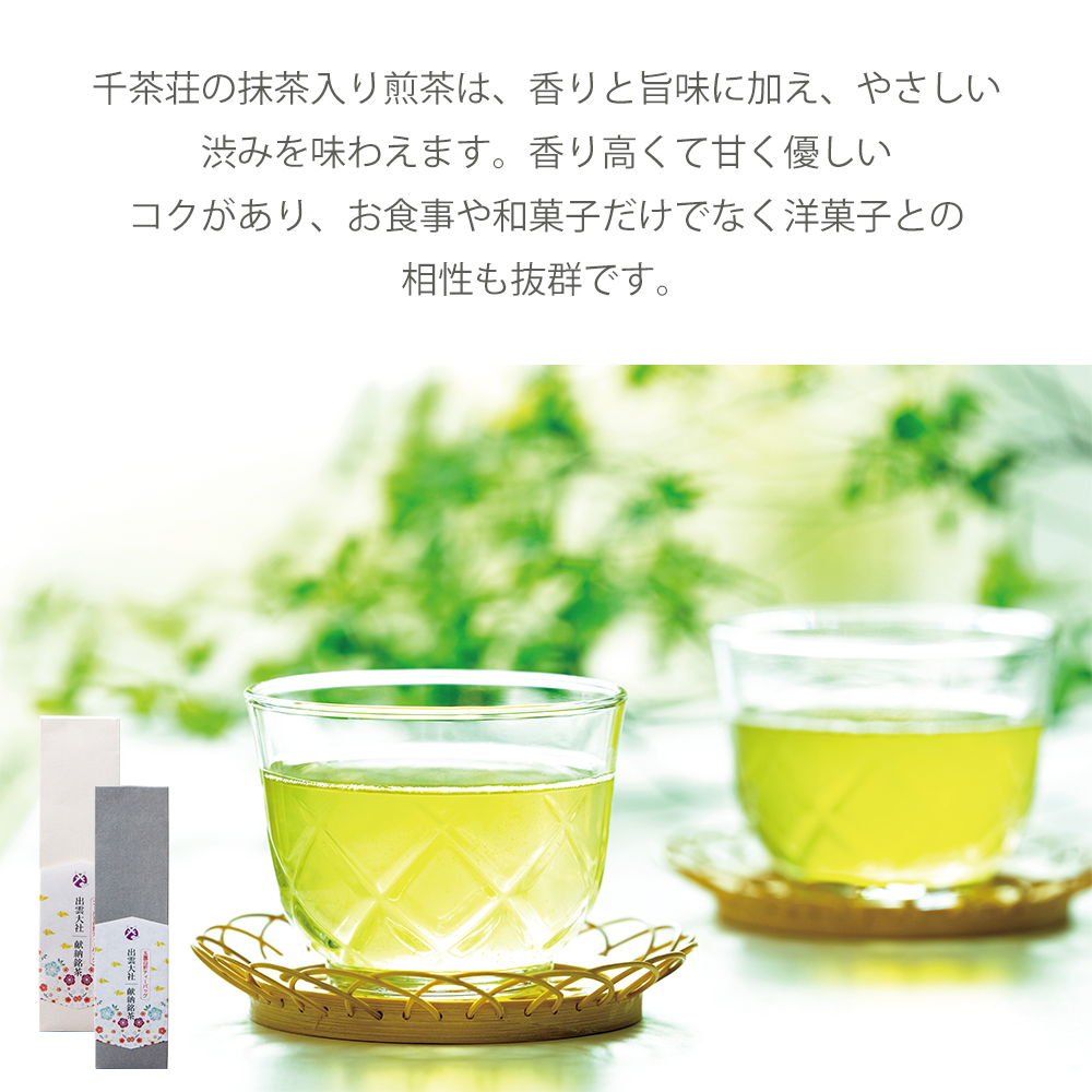 老舗茶舗・千茶荘の出雲大社献納銘茶ティーバッグと、老舗御菓子司・彩雲堂の和菓子を詰合せた銘茶と和菓子のギフトです。